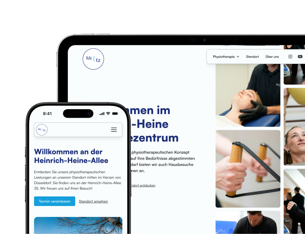 Das Heinrich-Heine Therapiezentrum bietet ein breites Spektrum an physiotherapeutischen Leistungen. Die bisherige Online-Darstellung machte diese Vielfalt jedoch nicht ausreichend sichtbar. Zudem fehlte eine einfache Möglichkeit für Patienten, Termine digital zu buchen und sich über Standorte zu informieren.